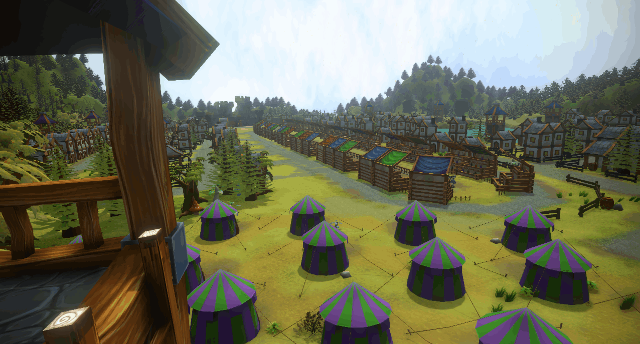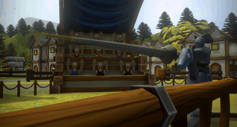 In a post-apocalyptic world where robots have taken over humanity... you and a friend have to joust it out with each other on improvised horses within an improvised replicated-at-best medieval village that's built by robots!
