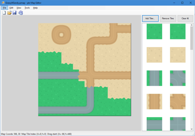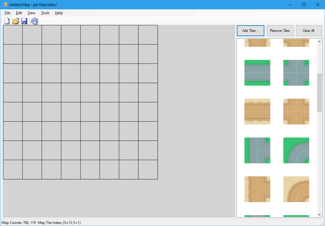 The release of this application includes a demonstration map file and a couple tilesheet images to be loaded into the palette and painted with.